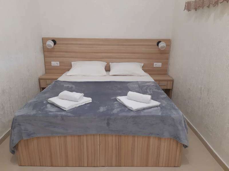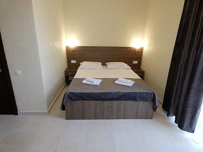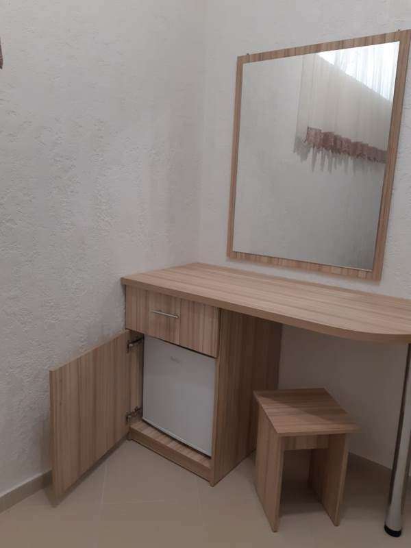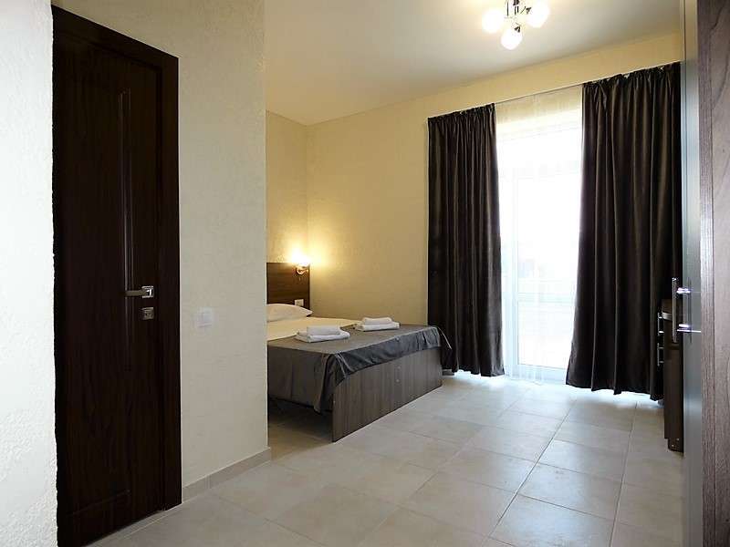 шкаф, тумбочки, стулья, кровать двуспальная, кровати односпальные, туалетный столик, вешалка, балкон, посуда